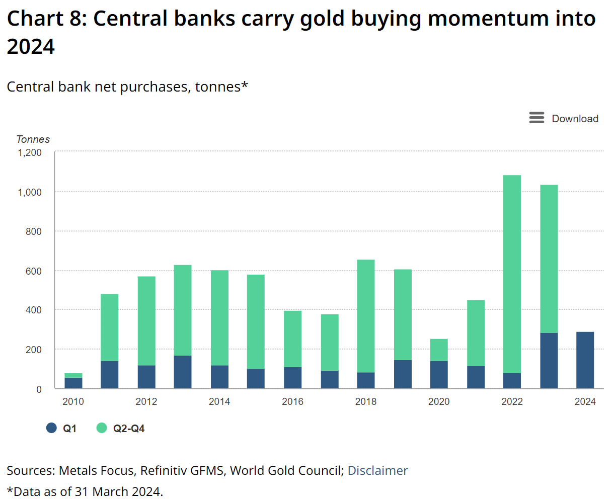 Deze week kwamen een aantal berichten voorbij die bevestigen dat goud nog steeds een belangrijke rol speelt als monetaire reserve voor centrale banken. Zo maakte de World Gold Council in een nieuw rapport bekend dat centrale banken in het eerste kwartaal van dit jaar een recordhoeveelheid van 290 ton goud hebben gekocht, een fractie meer dan het record van vorig jaar. Vooral China, India en Turkije voegden veel goud aan hun reserves toe.