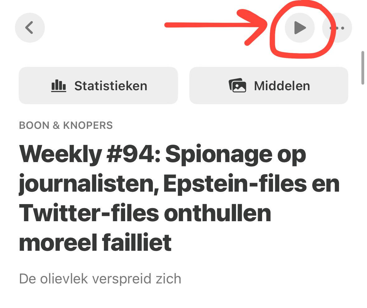 Heb je niet iedere week tijd om deze weekupdate te lezen? Geen probleem, want in de app van Substack (Apple/Google) zit ook een voorleesfunctie die best goed werkt. Zo luister je onze weekupdate als een podcast. Bijvoorbeeld tijdens het reizen, het koken of andere bezigheden. Open de weekupdate in de Substack app en klik op het kleine afspeelicoontje rechtsboven.